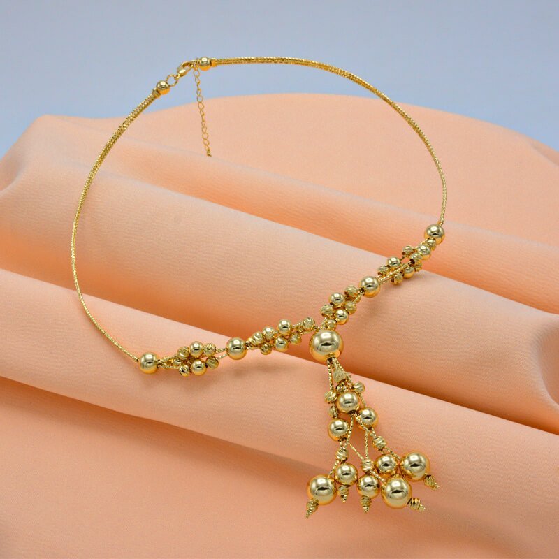 طقم الفقاعات شبيه ذهب ، مزين بكريات مطلية بلون الذهب التي تضفي عليه جاذبية التي تتلألأ بشكل رائع.