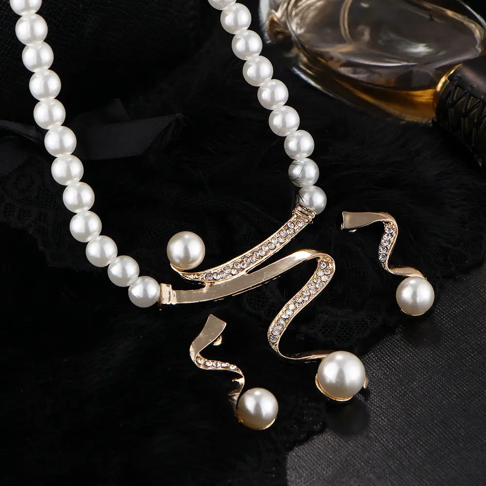 بريق اللؤلؤ الفاخر عقد وأقراط بتصميم أنيق يضفي لمسة من الفخامة