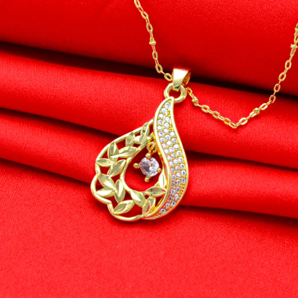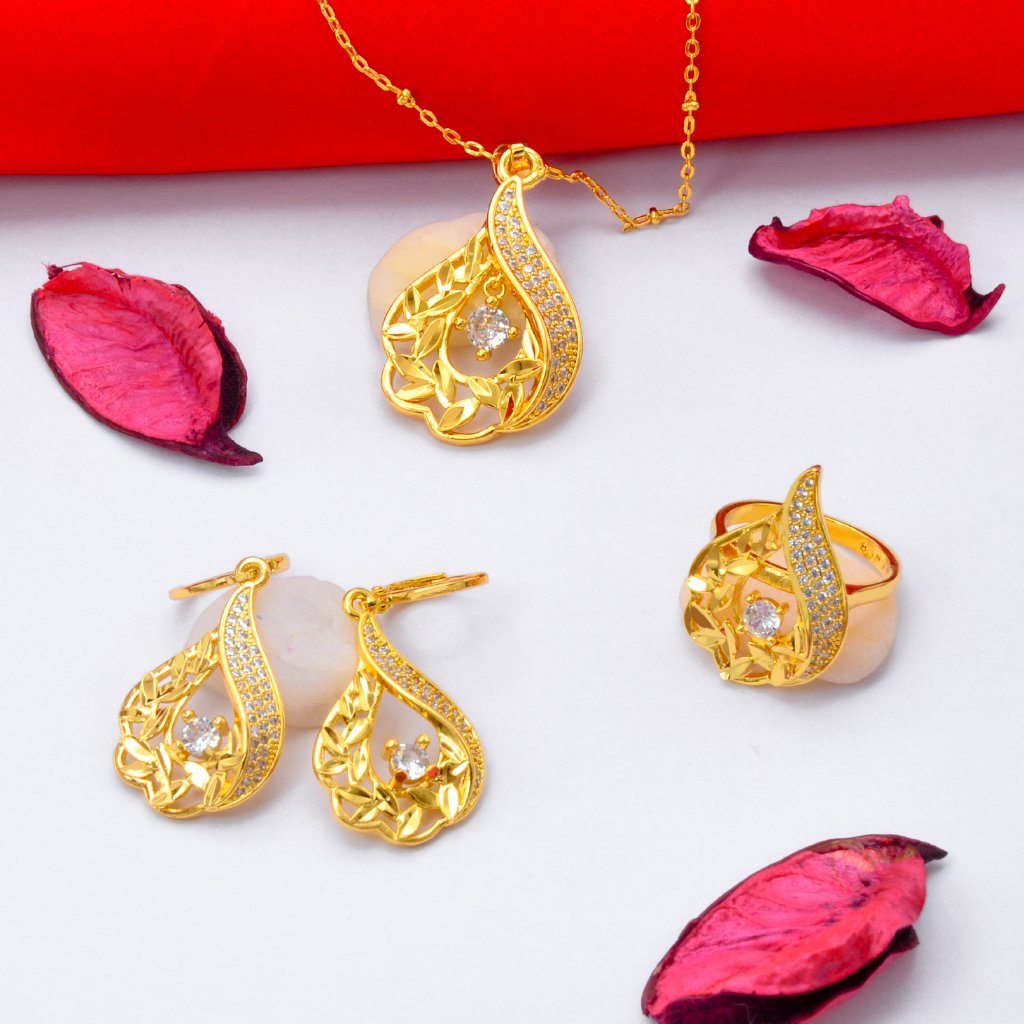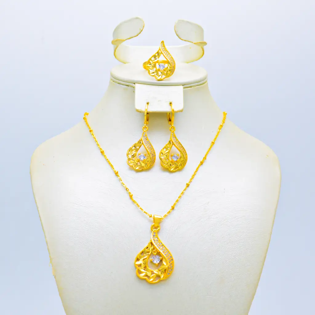 إليكِ طقم قطرة الماء الفريد، المصنوع من البلاكيور بجودة عالية ولمعان ساحر يحاكي الذهب الخالص عيار 21، ليمنحكِ إطلالة راقية تدوم طويلاً دون أن يفقد بريقه.
