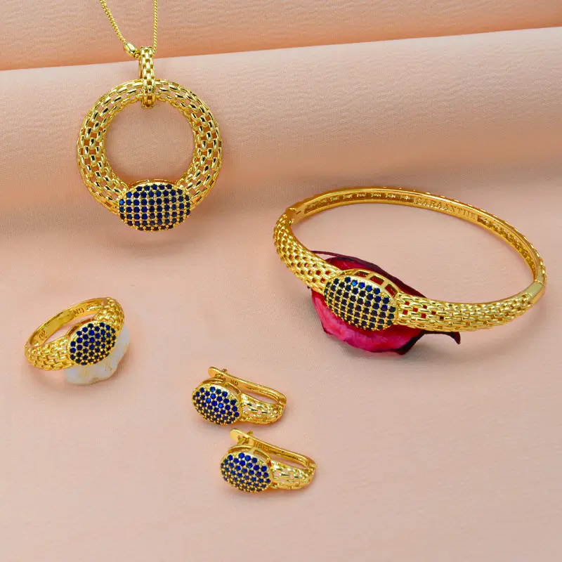 طقم العين الزرقاء هو طقم مجوهرات فاخر وأنيق يجمع بين الجمال والجودة.