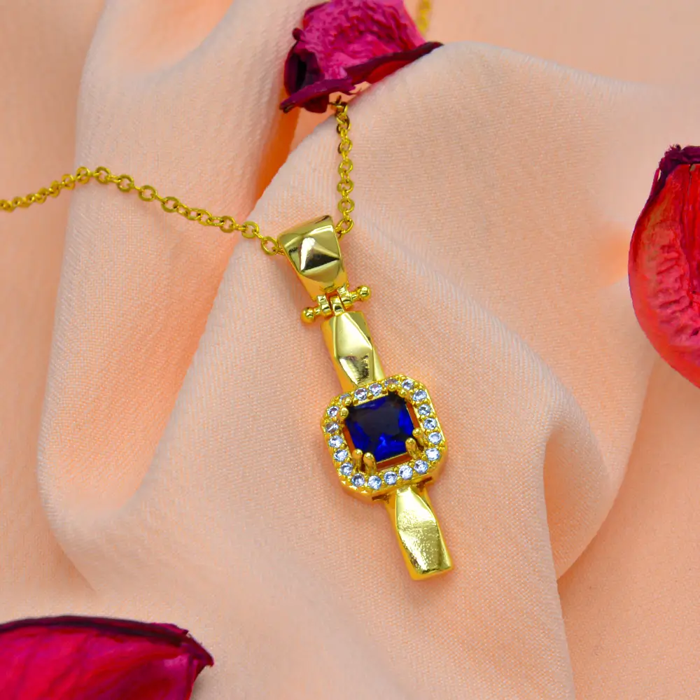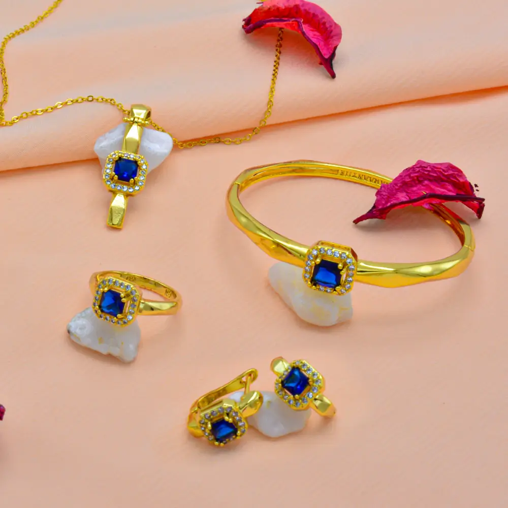 طقم الياقوت الازرق من البلاكيور شبيه ذهب 21 قيراط PARURE SAPHIR BLEU EN PLAQUÉ OR
